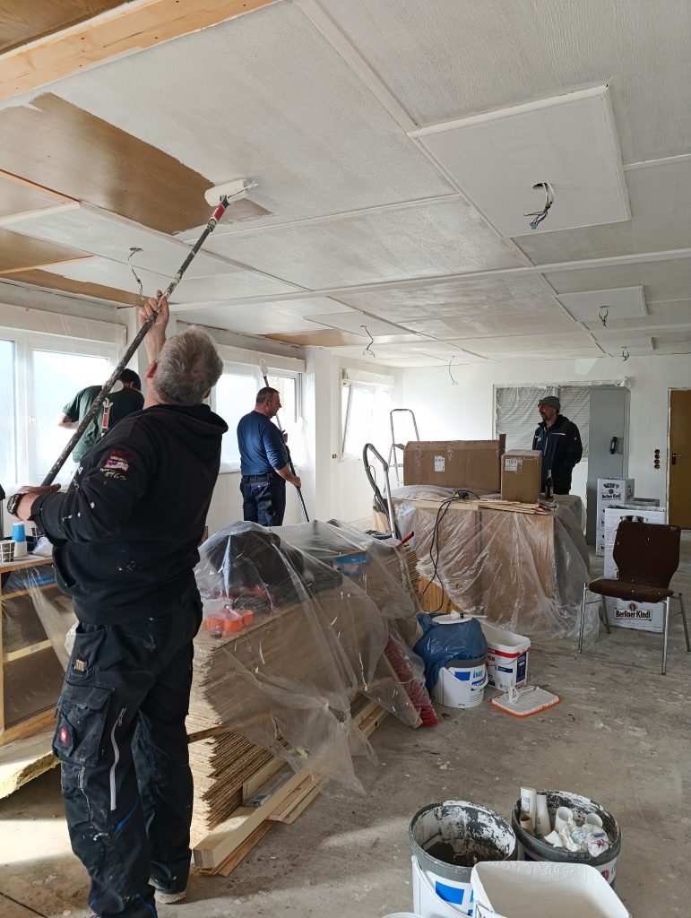 Der nächste Arbeitseinsatz – Farbe und ne Menge Spaß admin1. März 20251. März 2025 Sowohl die Wände, als auch die Decke und einige Klamotten haben in den letzten Tagen an Farben gewonnen – das Vereinsheim nimmt wieder Formen an. Anbei ein paar Eindrücke der letzten Arbeitseinsätze.